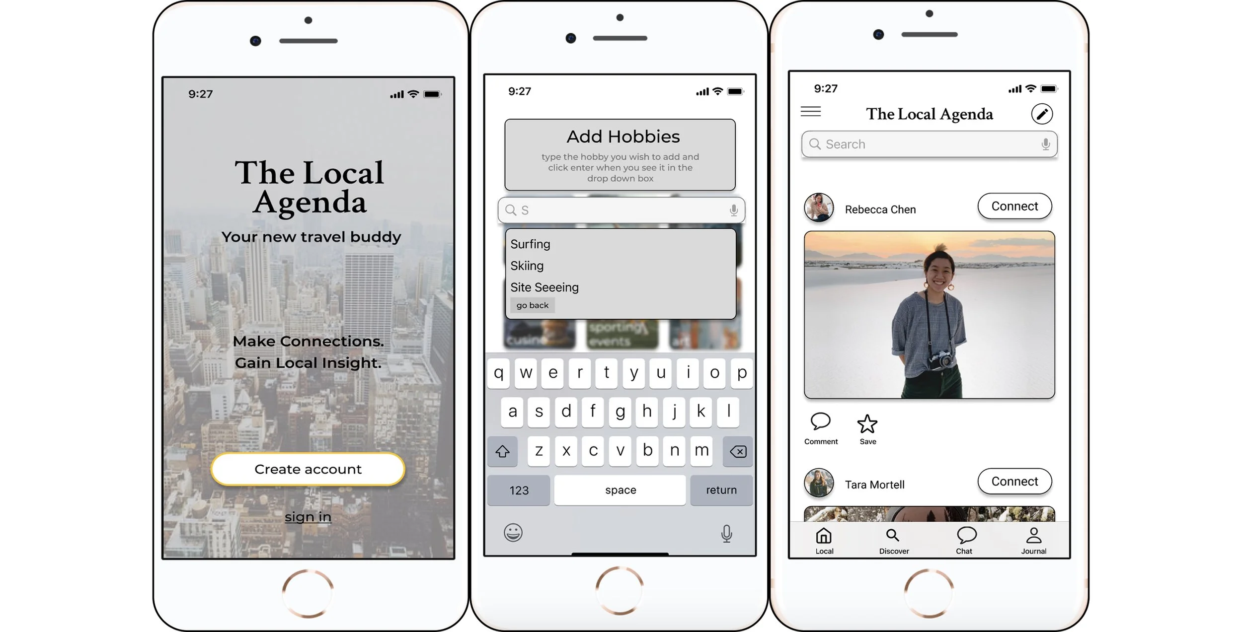 This project was completed at the UT UX Bootcamp. The task was to build an app to solve a problem. My team and I chose feeling isolated while solo traveling. We designed an app that allows users to share experiences and connect with other solo travelers in a specific area while prioritizing safety.