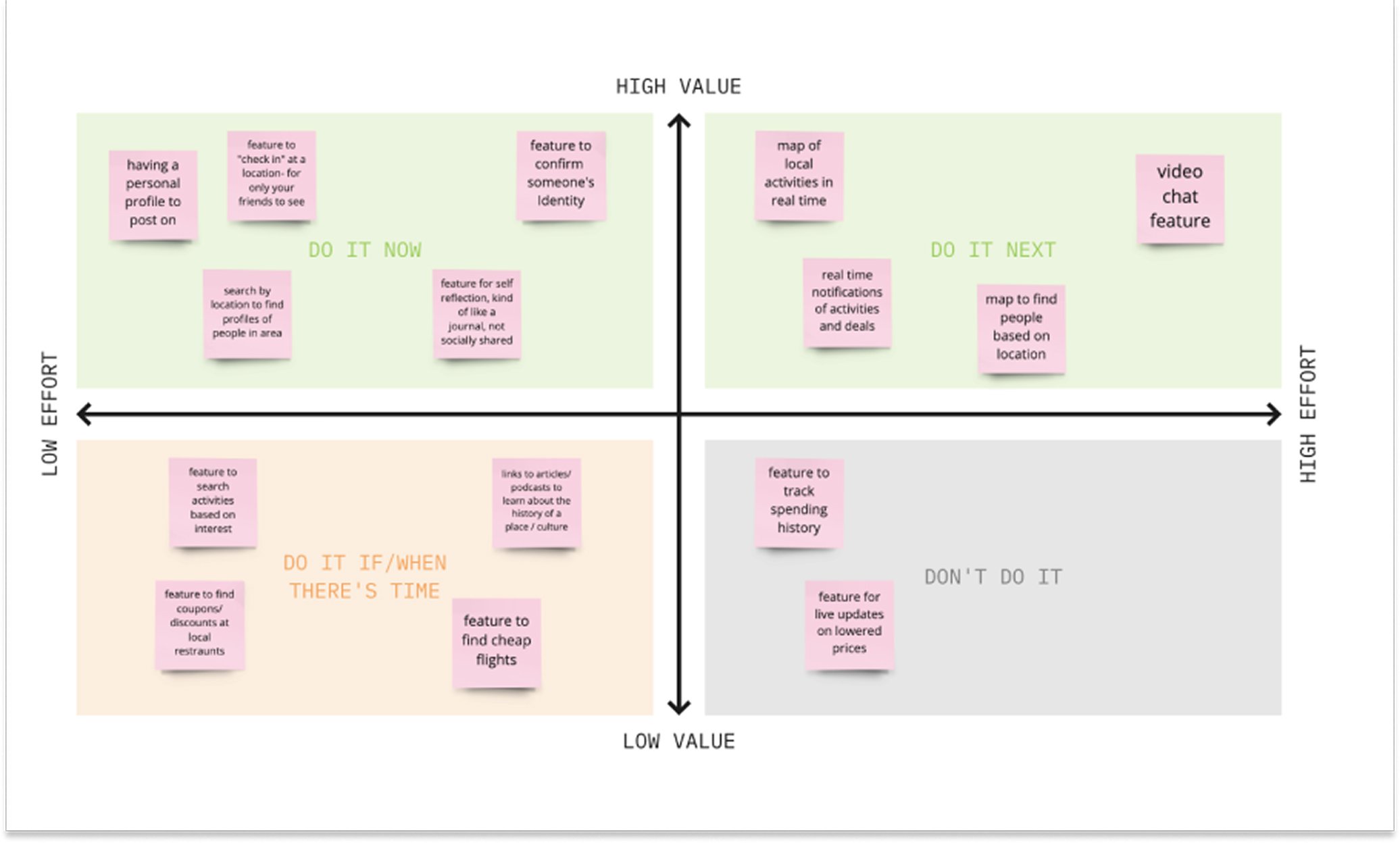 Based on our research we built out what features we should prioritize given our goal for the app.